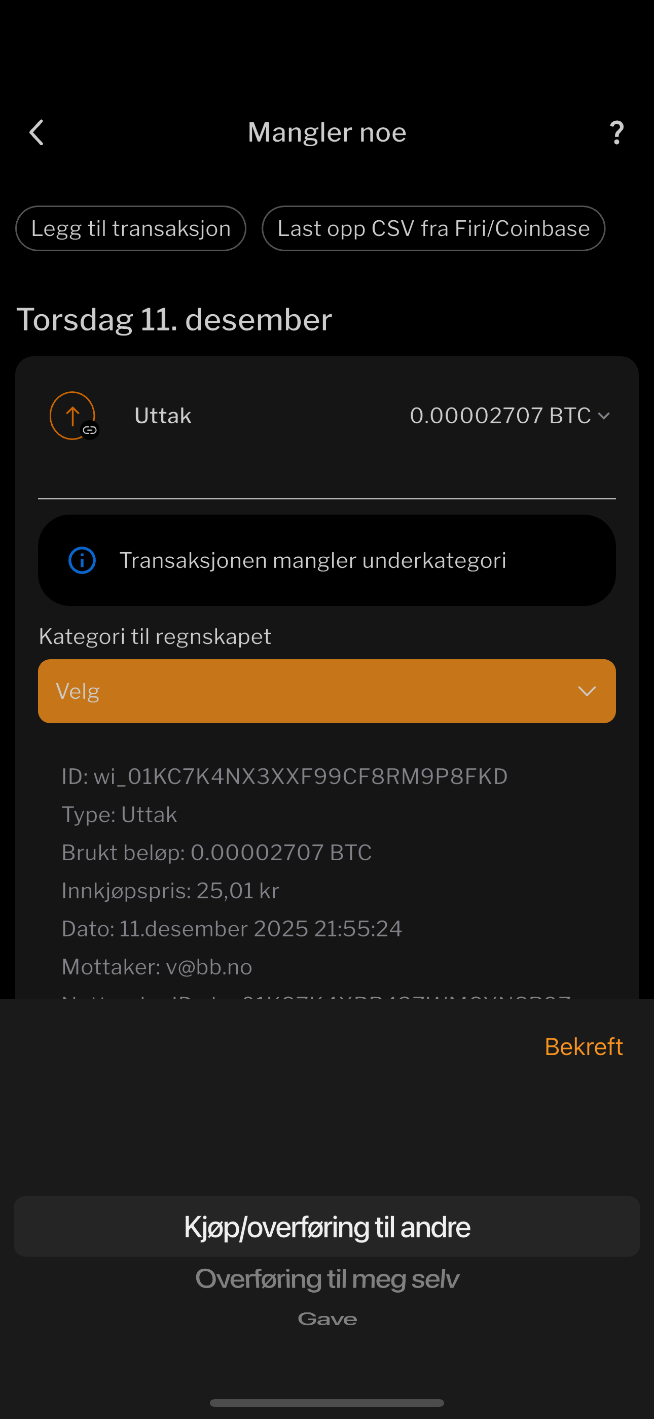 Noen transaksjoner trenger kanskje litt ekstra info. Fyll ut det som mangler.