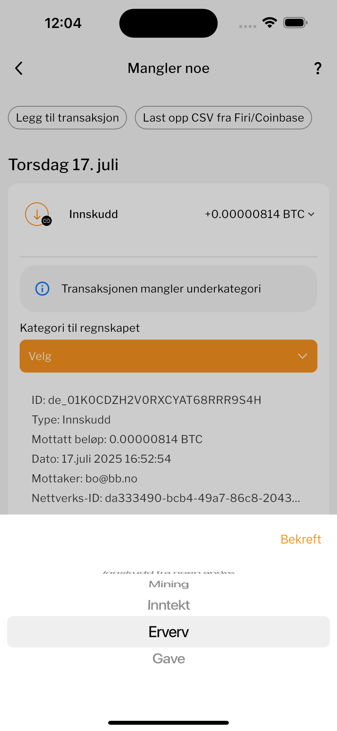 Om du sender eller mottar bitcoin, hjelper vi deg med å føre regnskapet ditt riktig, så skatten din også blir riktig.