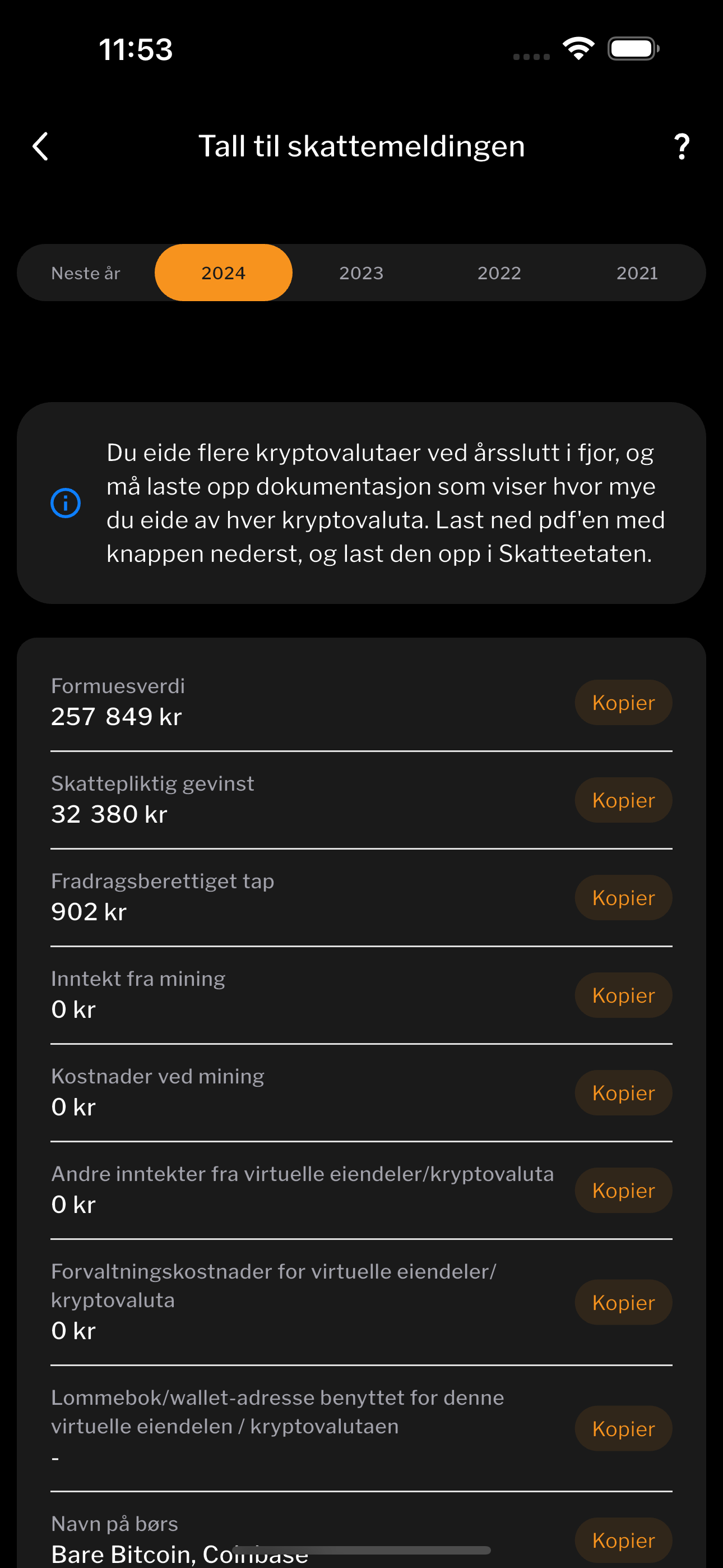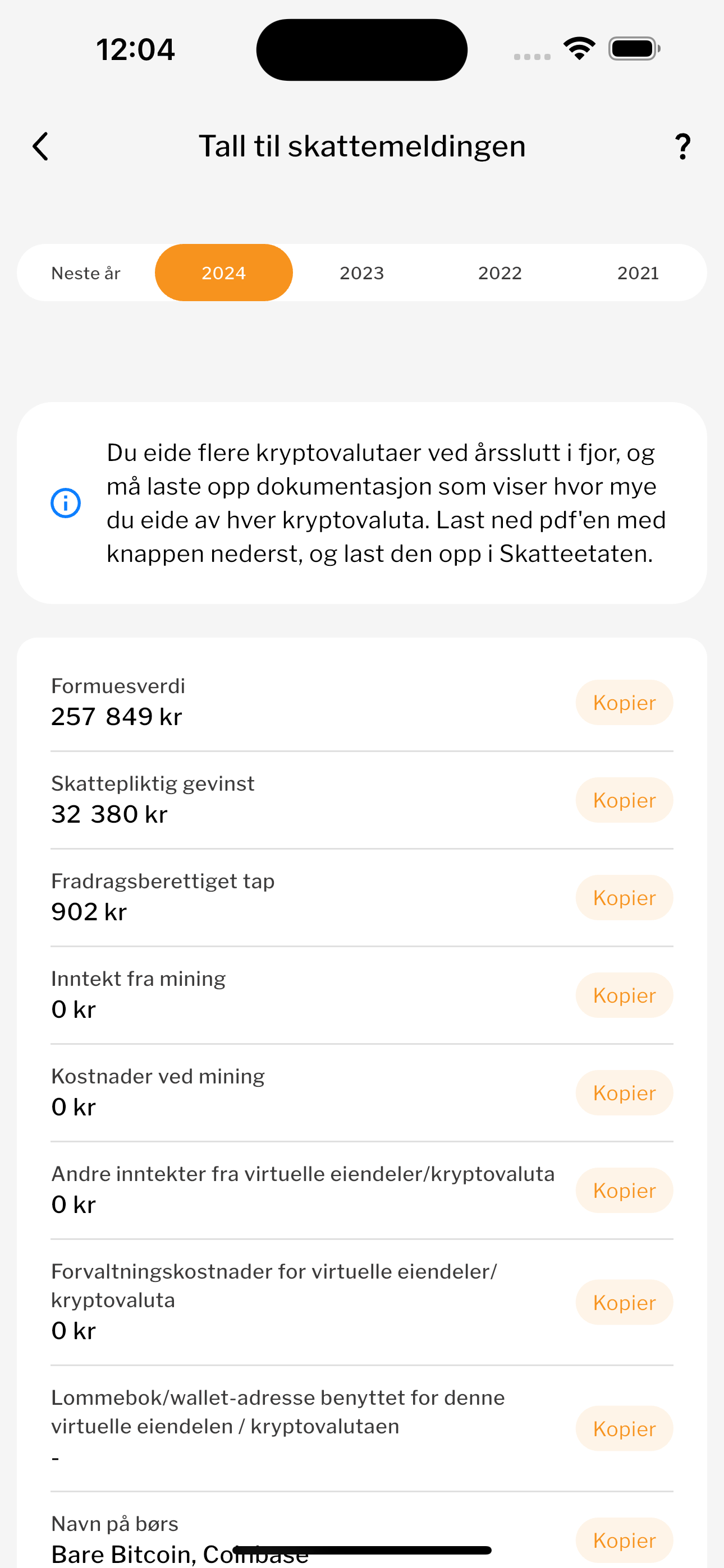 - Vi spytter ut tall du kan kopiere inn i skattemeldingen